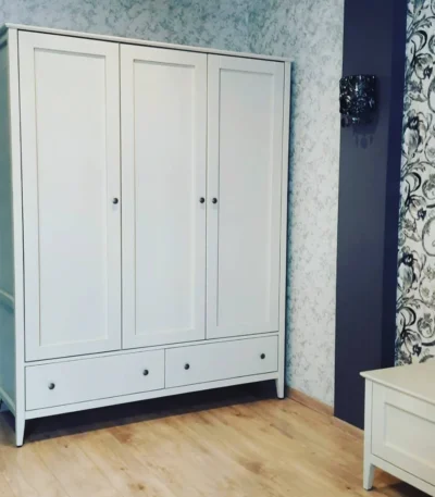 Шкаф 3х-дверный белый распашной из массива сосны ВРК787